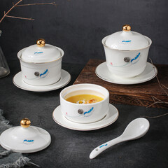 驰度燕窝碗陶瓷炖盅带盖隔水炖盅内胆金边汤碗蒸碗蒸蛋盅碗甜