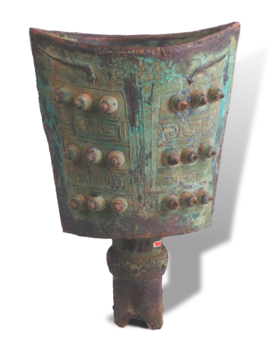 西周龙纹铜铙,通高37厘米,铣间宽24.5厘米,仿佛在静静等待知音之人。它上面36枚三组对称的乳钉纹,在云雷纹、直弦纹、兽面纹、爬虫纹的环绕下,显得庄重而神秘。当敲击它时,那穿越千年的悠扬之声,似乎能唤醒沉睡的历史。