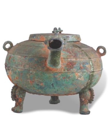 春秋兽首蟠虺纹铜盉,造型独特,口径10厘米,高17.6厘米。流作兽首形,口圆张,仿佛在诉说着当年的故事。盖上饰蟠纹和变形蝉纹,腹部的绹索纹和细密蟠纹,展示了春秋时期高超的青铜铸造工艺。作为古人调和酒、水的器具,它见证了当时的社交与生活场景。