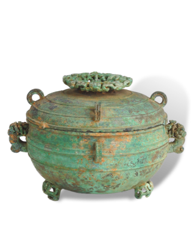 春秋愠儿盏,通高18厘米,口径19.5厘米,器盖、身内壁的铭文仿佛是历史的密码。盖上由蛇盘结而成的镂空圆形提手,以及周身的蟠虺纹、变形蝉纹和蟠螭纹,使其充满了神秘而独特的魅力。