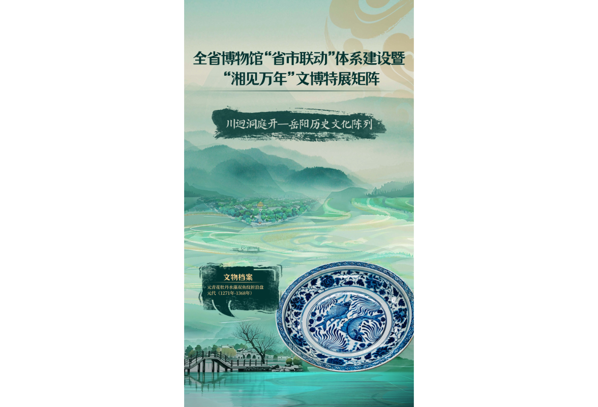 湘见万年丨颜值拉满!元青花牡丹水藻双鱼纹折沿盘正式亮相岳阳